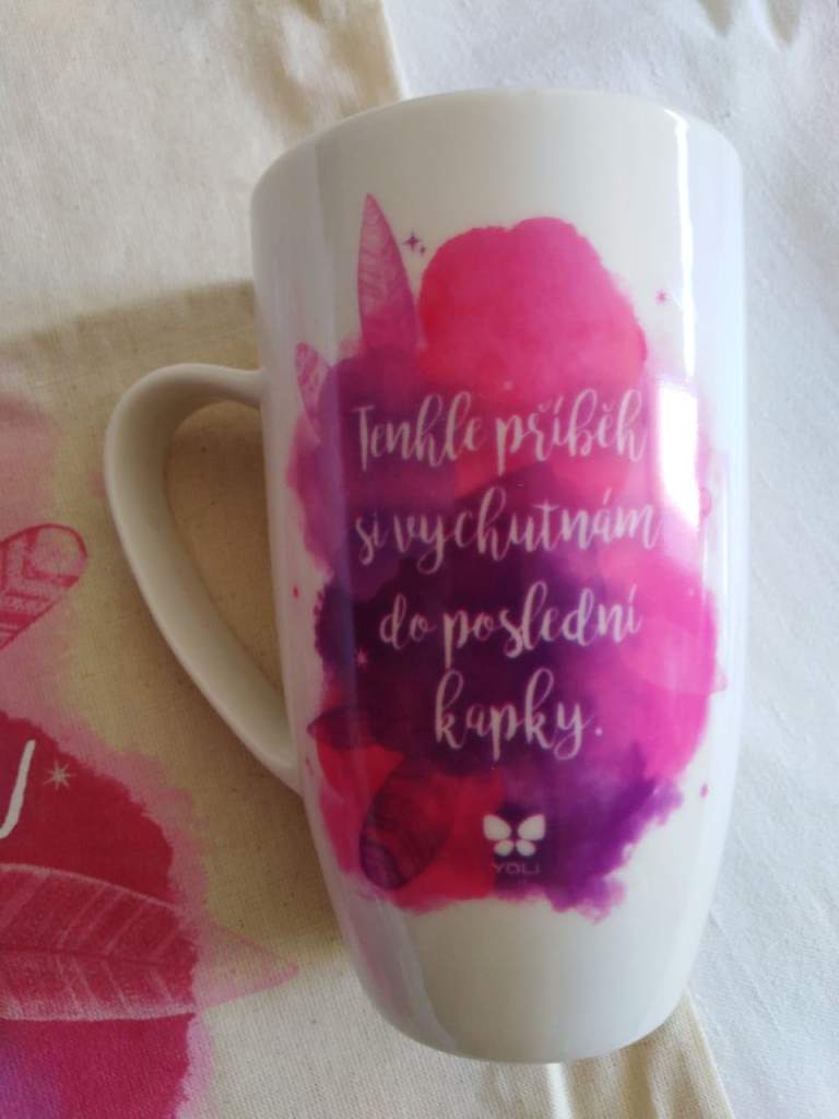 Jako první určitě stojí za zmínku, že Yoli má novou edici tašek a hrnků. Já jsem neodolala a pořídila si od každého jeden kousek. Co se týče hrnku, zaujal mě ten, který má motto ,, Tenhle příběh si vychutnám do poslední kapky“.